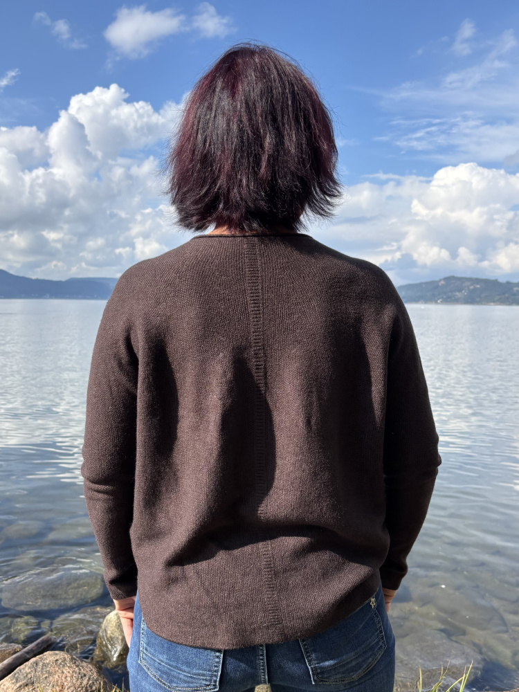 Denne er strikket i et stykke og har derfor ingen sømmer. God kvalitet og nupper lite eller ingenting.