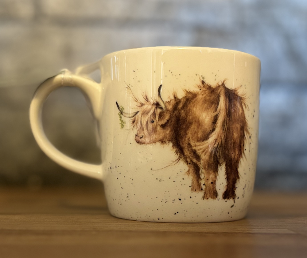 Denne koppen har et motiv av et flott og stolt høylandsfe med tykk pels og store horn. Dette kruset utstråler styrke.